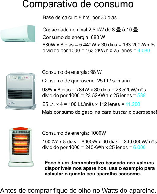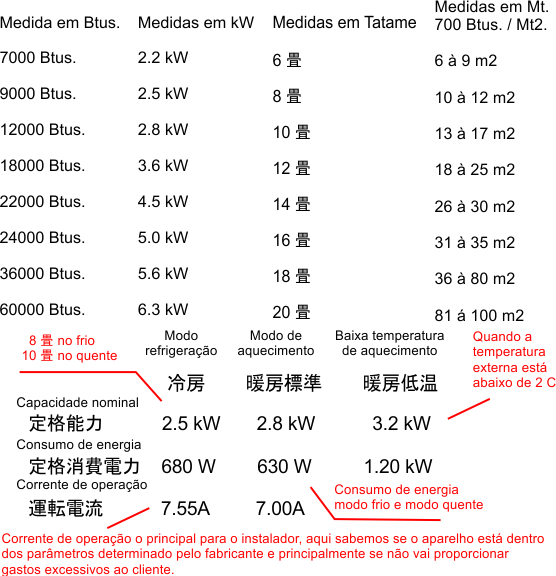 A grande maioria das pessoas que acabaram de chegar no japão não entendem direito este assunto devido que no Brasil se mede a capacidade do aparelho em Btus. e agora é por “tatame”, devo confessar que eu também quando retornei ao Japão estava bem perdido mesmo sendo um profissional da área.